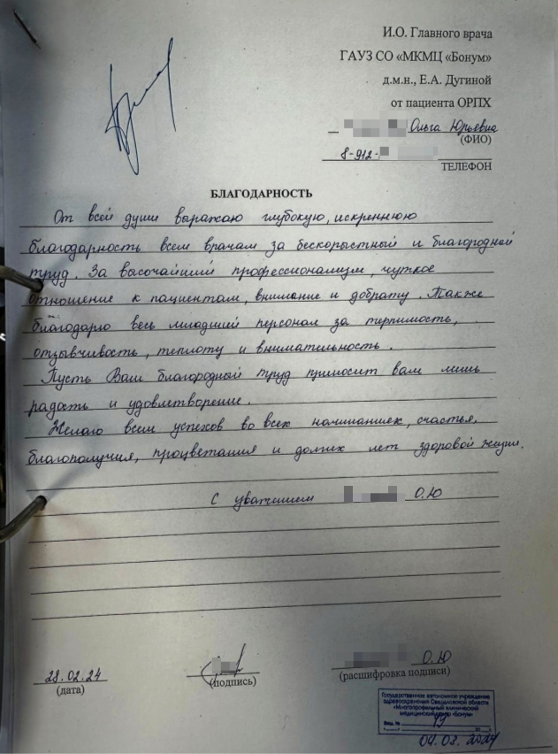 в 4 раза выросло число письменных благодарностей сотрудникам от пациентов и их родителей о результатах реабилитации